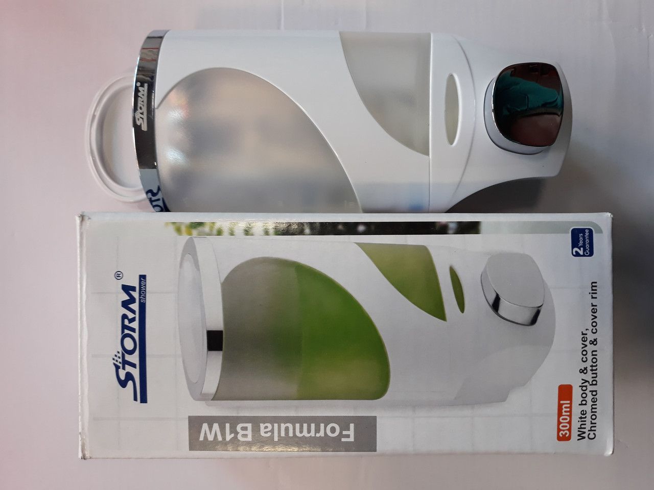Дозатор для рідких миючих засобів. Пластиковий білий корпус, об'єм 300 мл, монтаж настінний