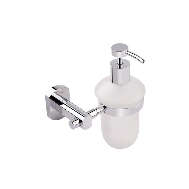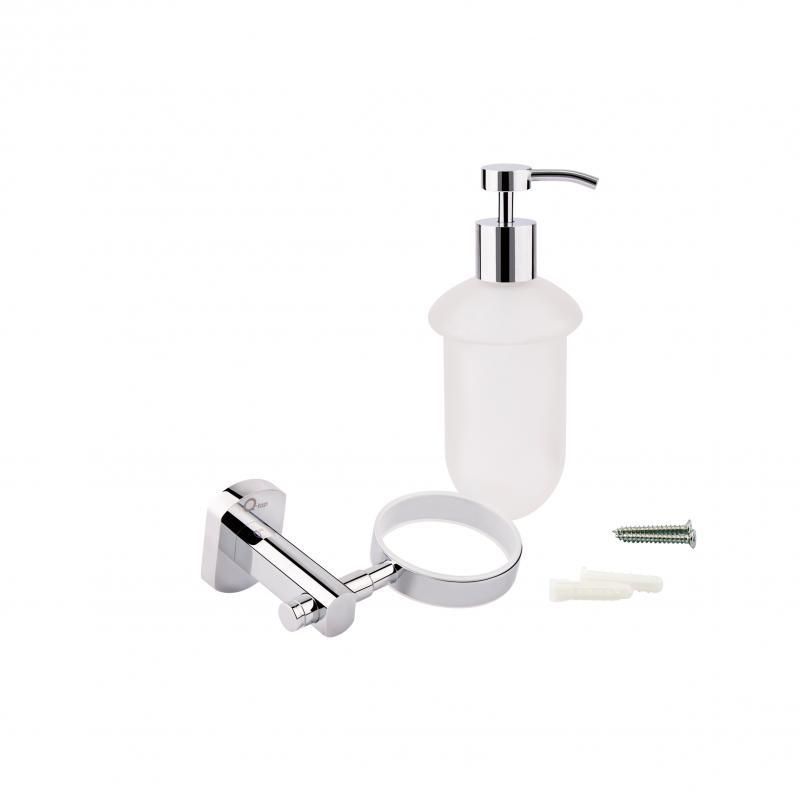 Дозатор для рідкого мила Qtap Liberty CRM 1152 робить процес мийки рук гігієнічним і швидким. Латунний тримач дозатора у вигляді кронштейна з кільцем має антикорозійні властивості і кріпиться на стіну. Пляшечка виготовлена з матового скла. Дизайн дозатора підходить по дизайну до інших аксесуарів, чудово впишеться в невеликі санвузли і, завдяки своїм розмірам, може кріпиться в будь-якому зручному і доступному місці. Не займає місце на раковині.