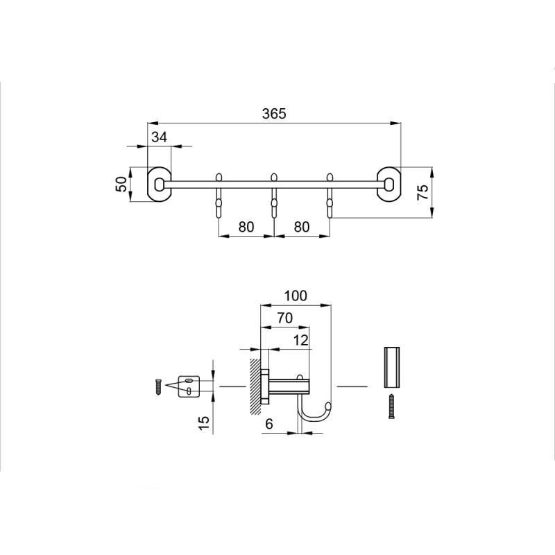 Гачок Qtap Liberty ORO 1154-3 виконаний у вигляді стержня з трьома гачками. Він кріпиться на стіну на зручній висоті до вставок з допомогою монтажних елементів, які входять в комплект. На вставки завдано фірмовий логотип виробника. Прихований монтаж дозволяє зберегти оздоблення ванної кімнати. Під час прибирання досить протерти за допомогою мильного розчину і м'якої серветки.