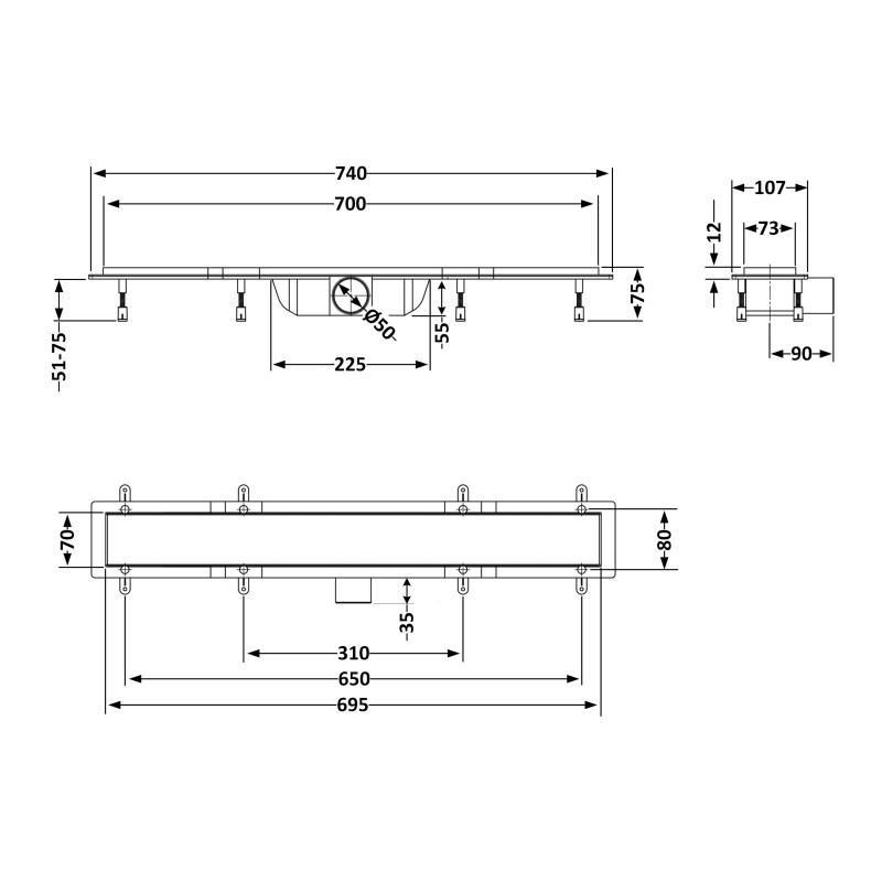 Трап лінійний Qtap Dry FB304-700 з нержавіючої сіткою 700х73