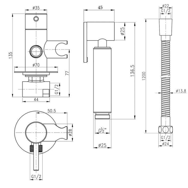В комплект входять: змішувач вбудованого монтажу, стоп-лійка, шланг. Усі компоненти виконані у чорному матовому кольорі. Доставка по Україні будь-якою службою безкоштовна!