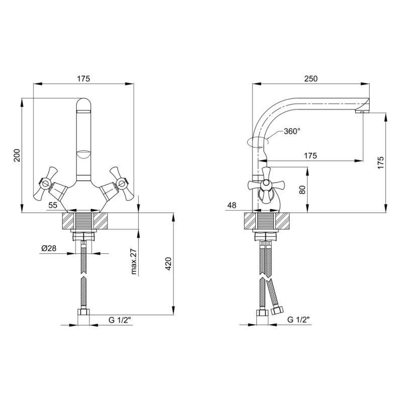 ОбладнанняЗмішувач, гнучкі шланги, кріплення.