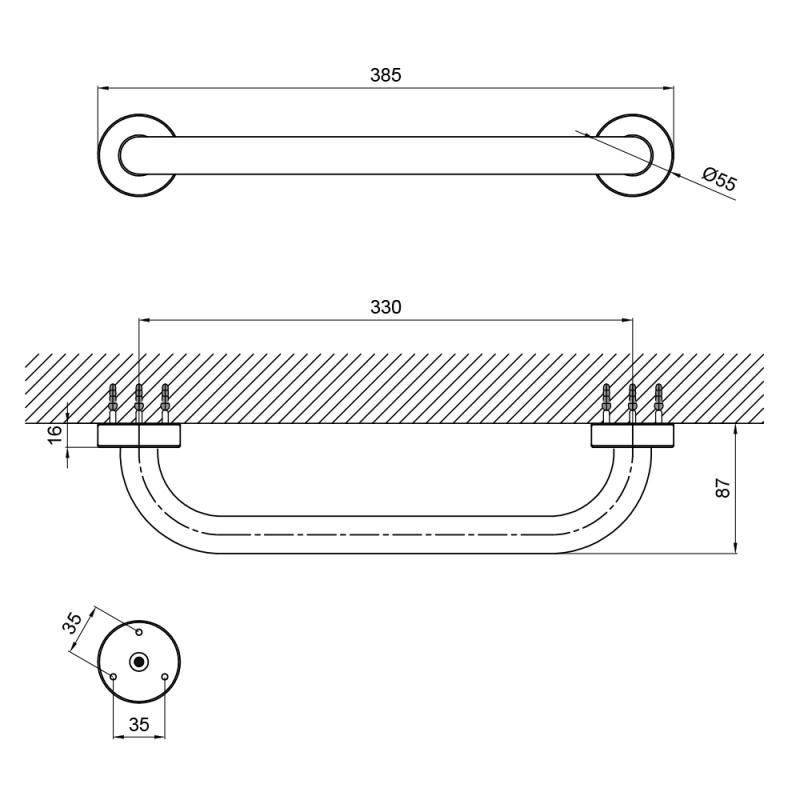 Поручень для ванни Lidz (CRM) 121.03.01 35 см