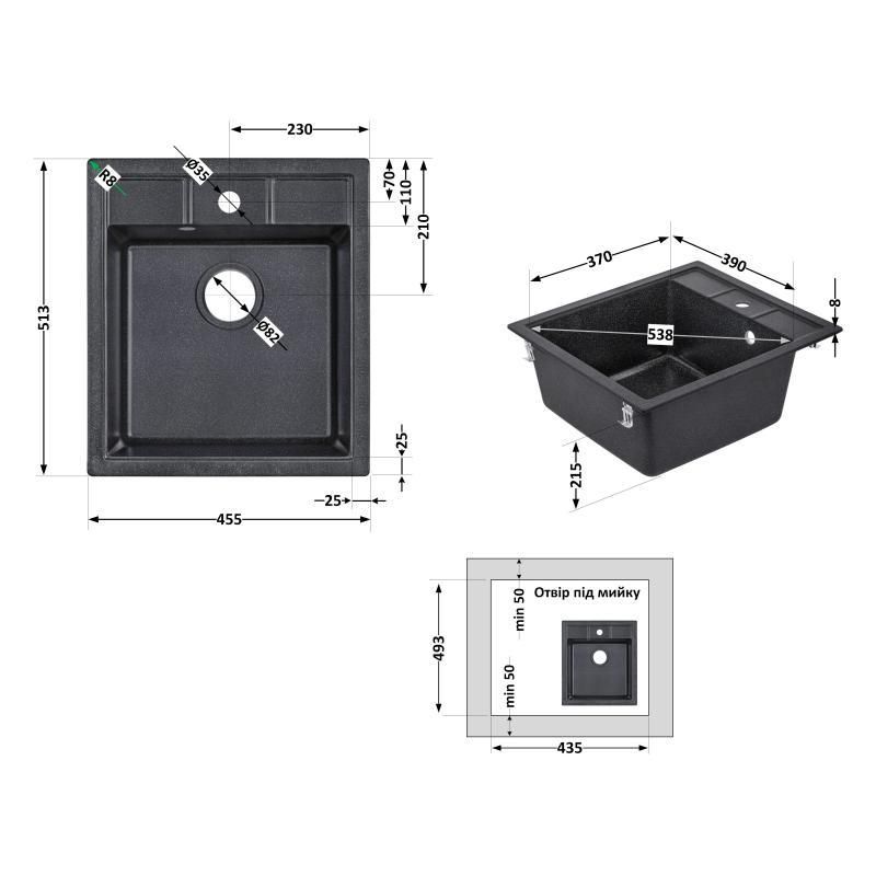Кухонна мийка Lidz 460х515/200 BLA-03 (LIDZBLA03460515200)
