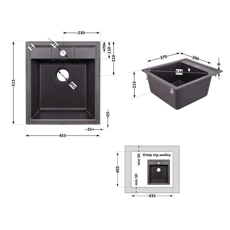 Кухонна мийка Lidz 460х515/200 GRF-13 (LIDZGRF13460515200)