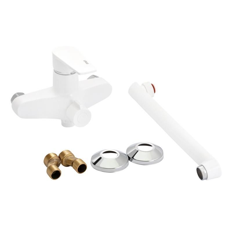 Змішувач для ванни Brinex 35W 005 з довгим поворотним виливом виготовлений з термопластичного пластику з рівномірним білим покриттям. Управління потоком здійснюється зручним важелем з маркуванням холодної та гарячої води, а перемикання на душовою режим - поворотним дивертором. Декоративні розетки допоможуть приховати вади монтажу.