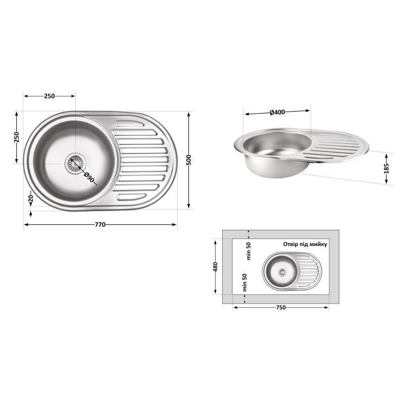 Кухонна мийка Lidz 7750 dekor 0,8 мм (LIDZ7750MDEC)