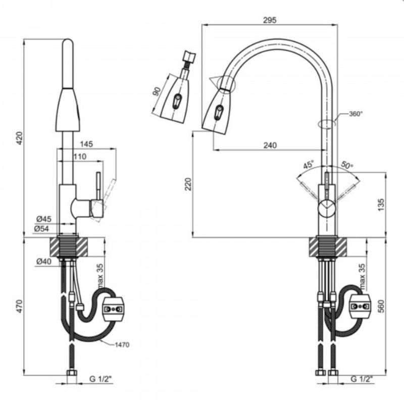 Додаткові функціїДовжина висувного шланга 1470 мм.