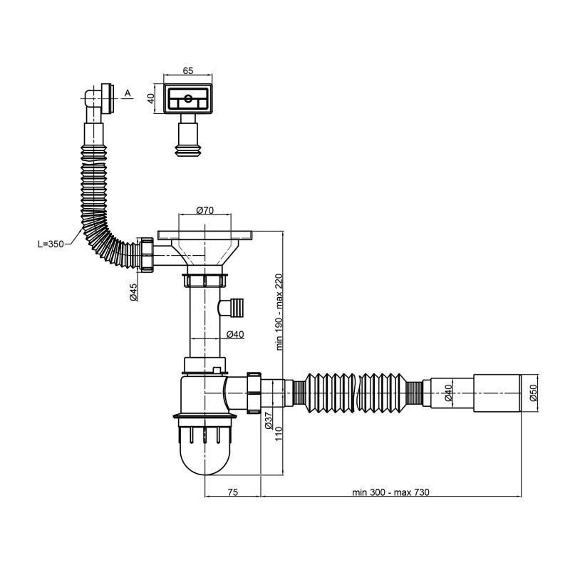 Додаткові функціїДовжина переливу: 350 мм. Довжина гофротруби: 300 - 730 мм.