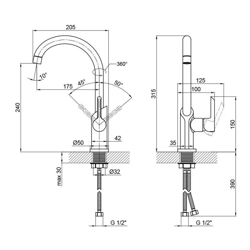ОбладнанняЗмішувач, гнучкі шланги, кріплення.