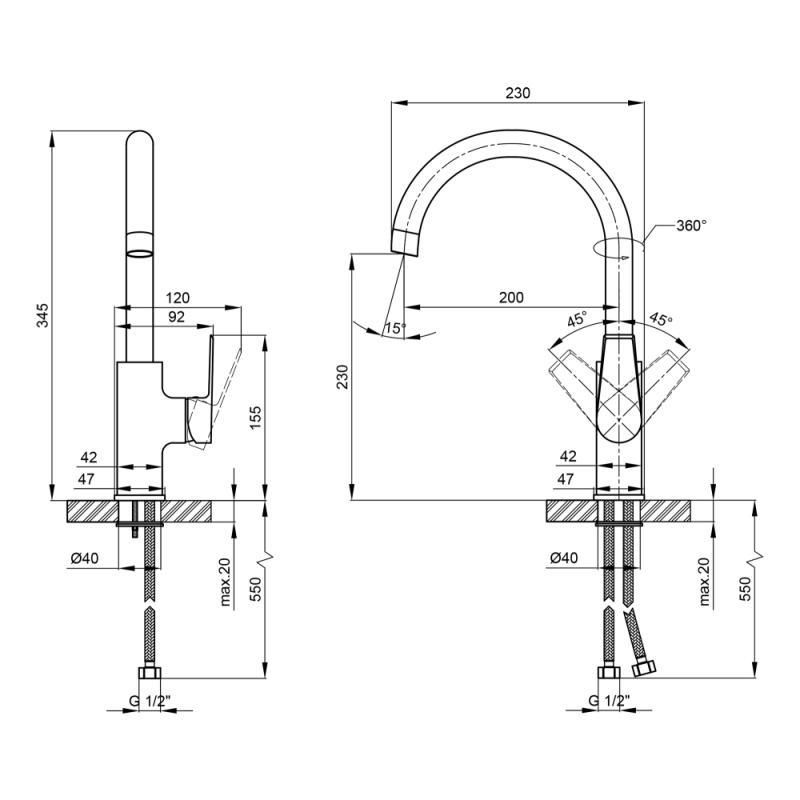 ОбладнанняЗмішувач, гнучкі шланги, кріплення.