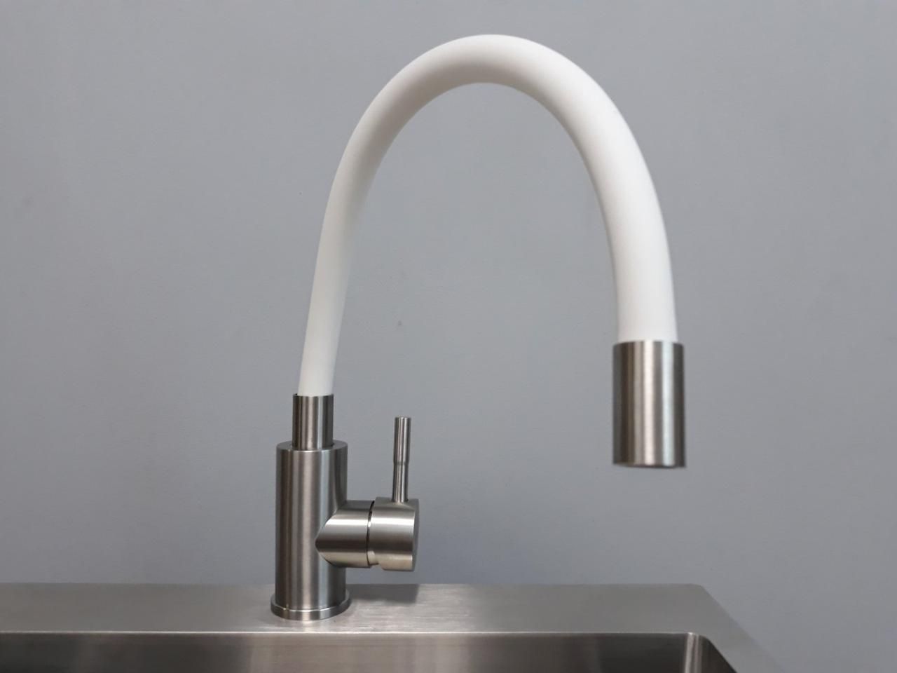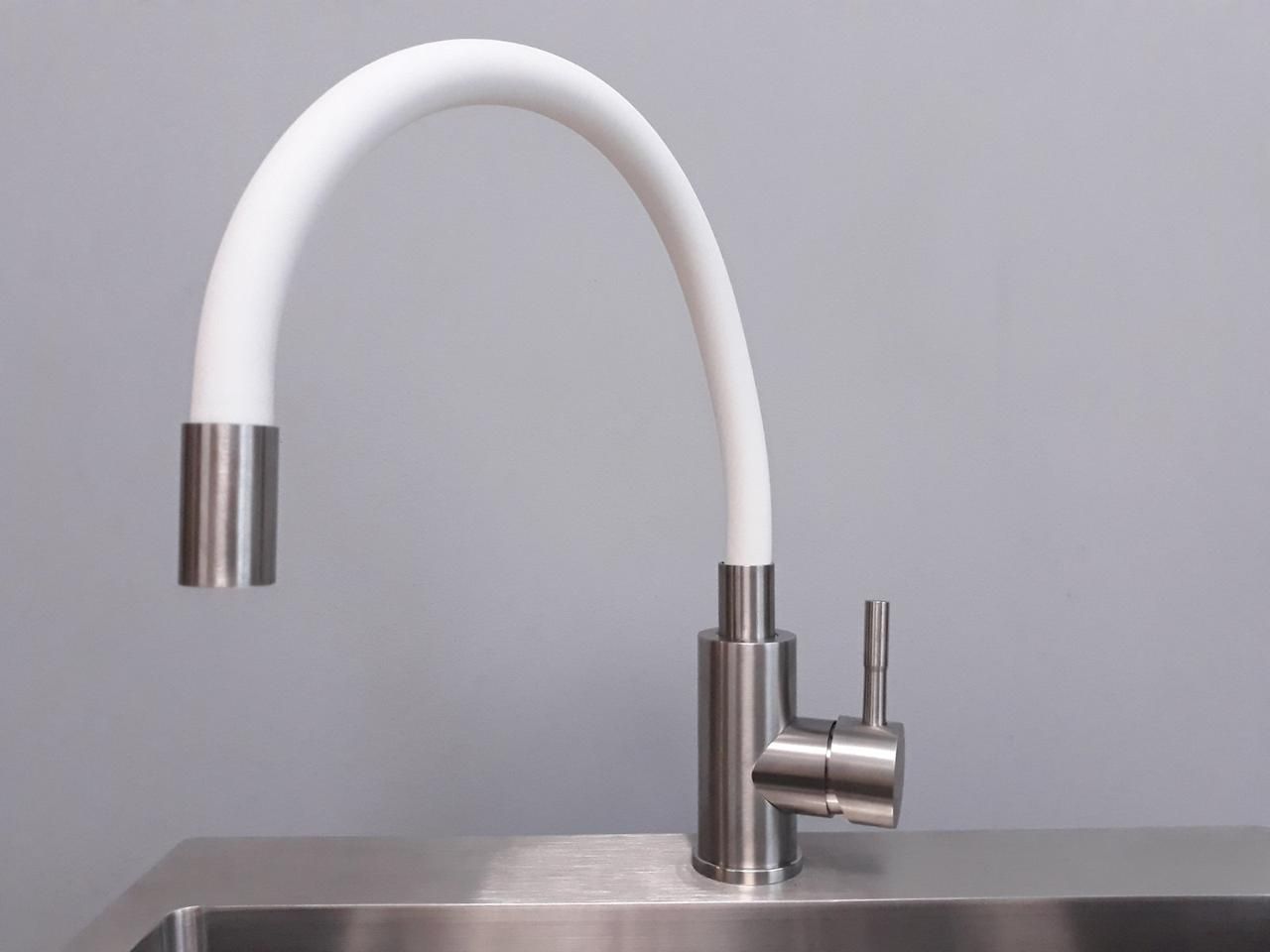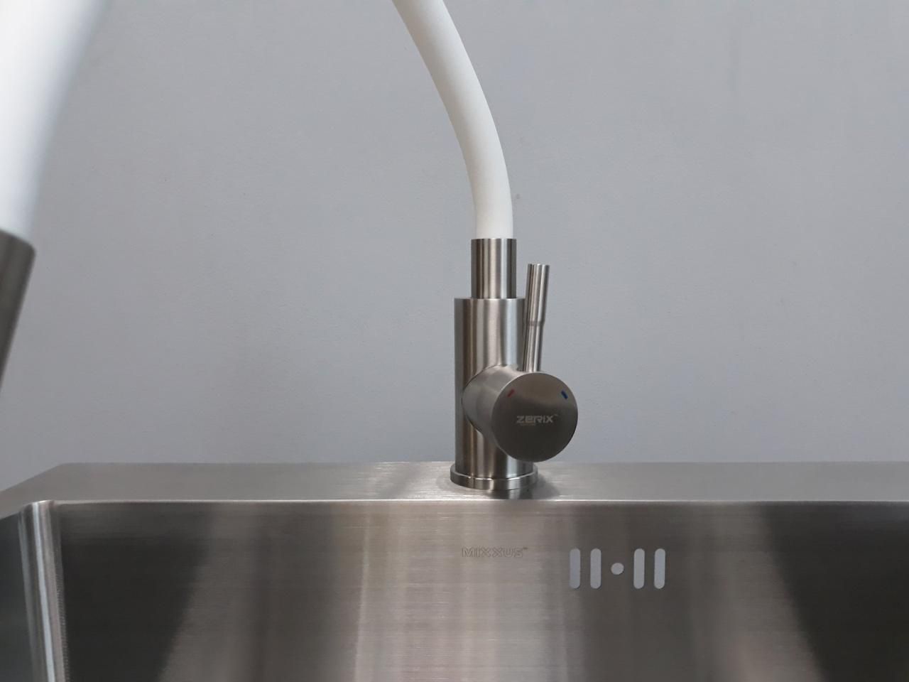 Змішувач для кухні з гнучким білим виливом Zerix SUS 011