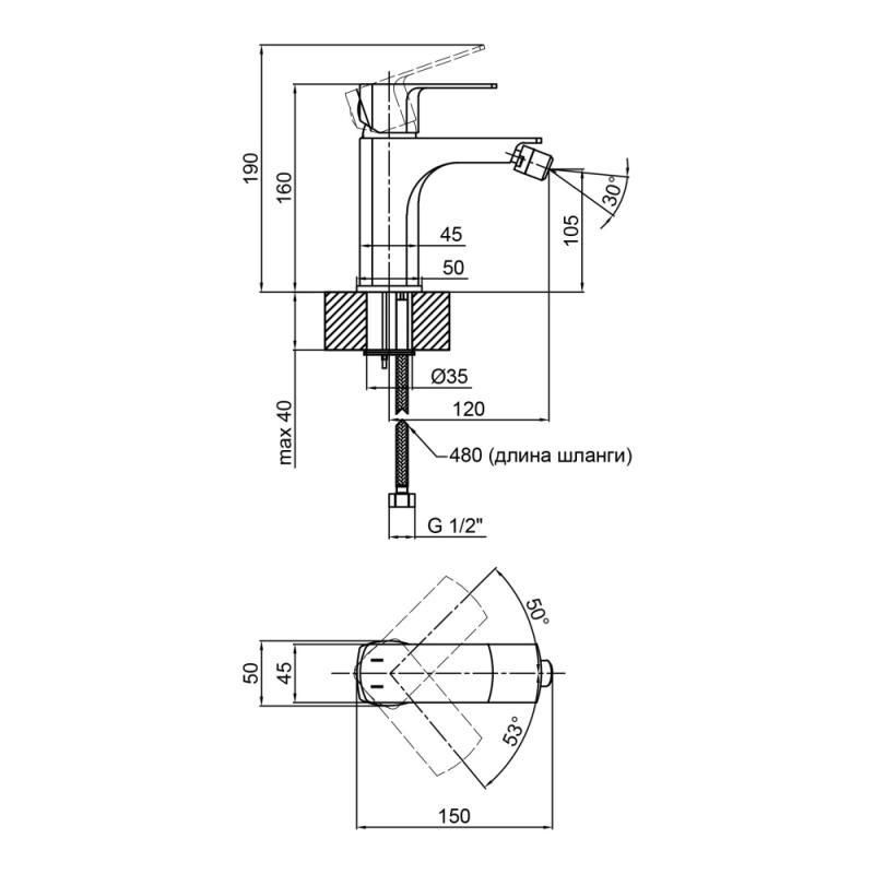 Діаметр підключення шланга1/2"