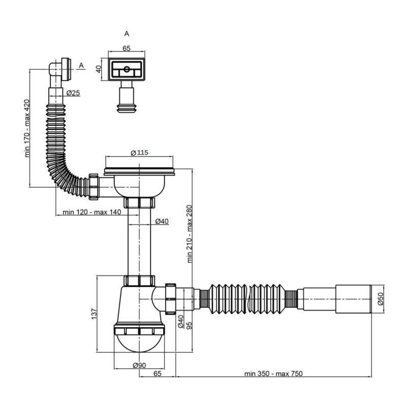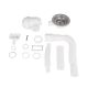 Сифон для кухонного мийки Lidz (WHI) 60 05 M001 01 виготовлений із пластику білого кольору у вигляді склянки - колби з металевими ґратами та гофрованих труб. Резервуар сифона відкручується для чищення. Гофрований вихід дає можливість змінювати довжину та кут труби. Завдяки комунікації для переливу можна уникнути переповнення кухонної раковини водою.
