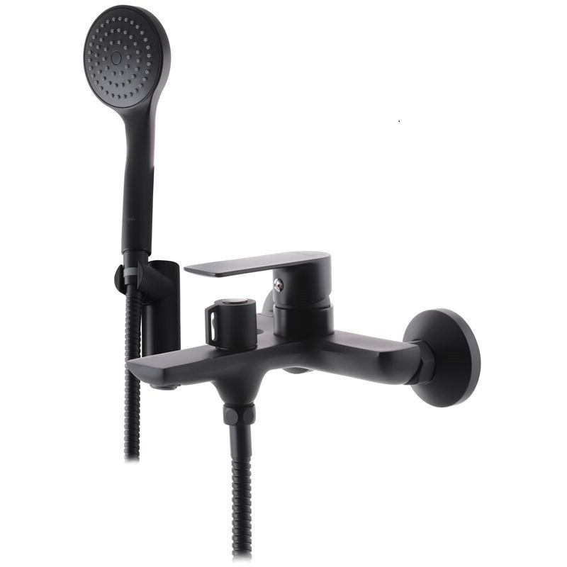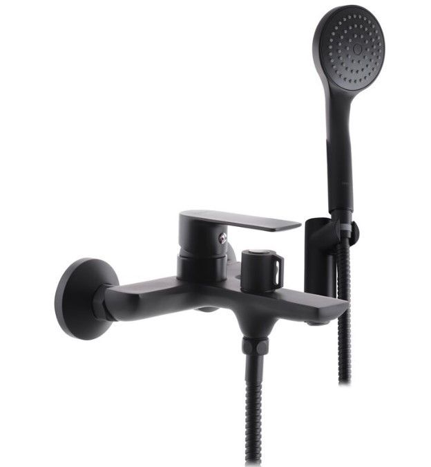Змішувач для ванни Haiba Alex 009 Euro Black зроблений у чорному матовому кольорі, всі комплекти також йдуть у чорному.