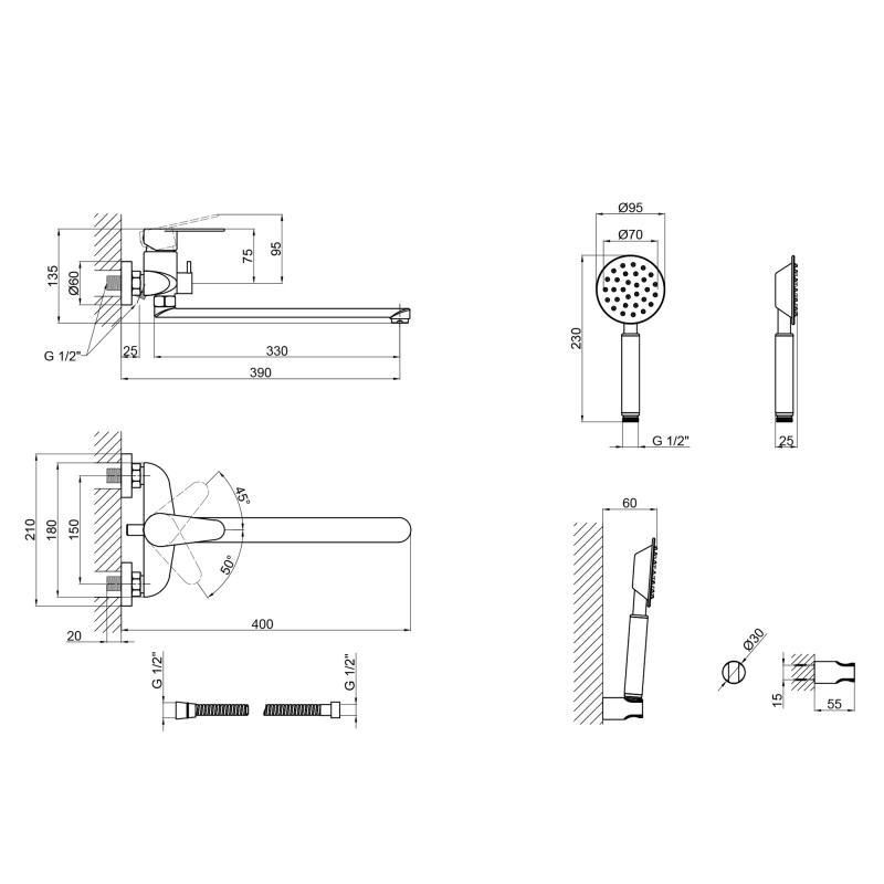 Змішувач для ванни Lidz (NKS) 09 35 005-1 виконаний з нержавіючої сталі, що гарантує тривалий термін експлуатації. Для включення подачі води досить підняти важіль і повернути його в необхідну сторону. Змішувач монтується на стіну над ванною з допомогою кріпильних елементів, які входять в комплект. Круглі розетки приховають похибки установки на обробці. Тримач для лійки кріпиться також на стіну. Таким чином, ваші руки будуть вільні під час душових процедур.
