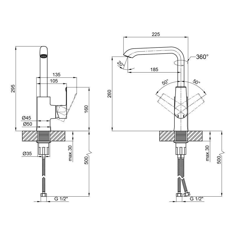 Змішувач для кухні Qtap Zelnava 9050101FC виготовлений з високоякісної харчової латуні, яка не схильна до корозії, стійка до ударів і появи тріщин. Глянцеве хромоване покриття не тільки підвищує довговічність змішувача, але й надає йому привабливості. Змішувач має одноважільне керування, за допомогою якого можна відрегулювати температуру та напір води. Змішувач виконаний у сучасному стилі, він ідеально впишеться в інтер'єр кухні.