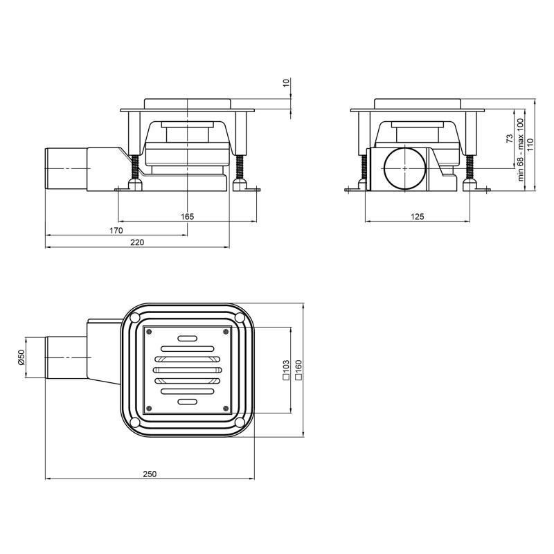 Додаткові функціїНавантаження 300 кг, рівень гідрозатвору 25 мм, швидкий монтаж.