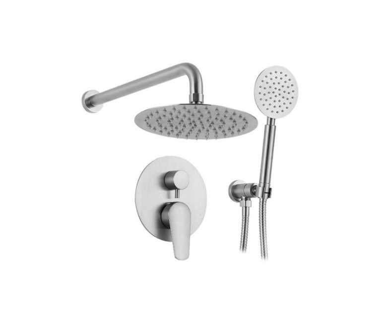 У комплекті поставки йде блок вбудованого, зовнішня панель з перемикачем потоків води, верхня лійка діаметром 20 см з кронштейном, ручна лійка, шланг для ручної лійки і кронштейн з виходом 1/2 дюйма для ручної лійки.