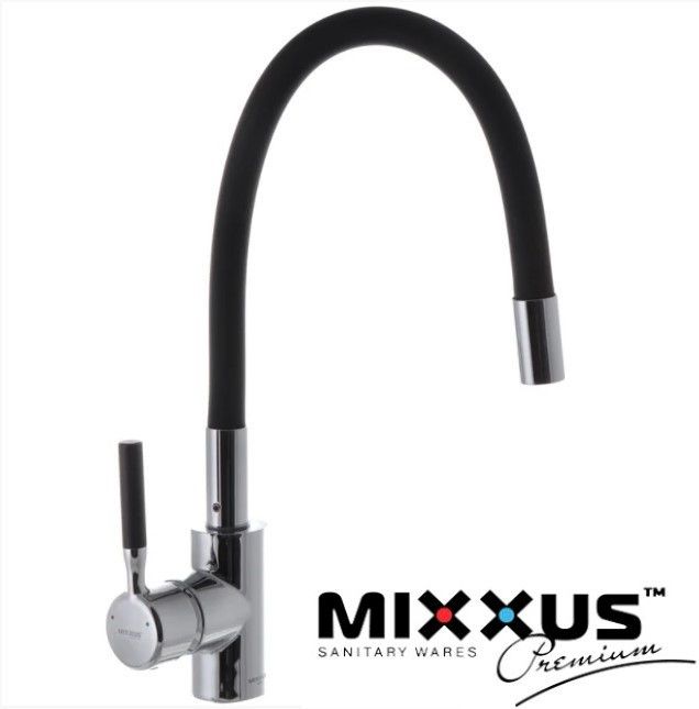 Змішувач для кухні з силіконовим зливом чорного кольору MIXUS PREM RIO 011, корпус змішувача зроблений з високопрозорого латува і порити хром. Витока складається з гнучкої трубки і зовнішнього силіконового рукаву, що дозволяє гнути його під будь-яким зручним кутом. Гарантія на корпус змішувача становить п'ять років, на комплектуючі 1 рік.