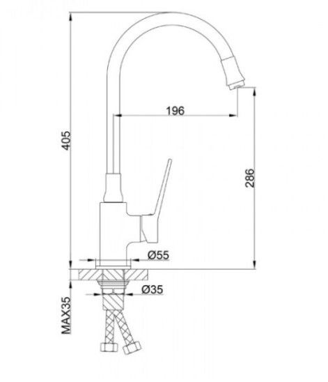 Змішувач Frap F4462 оснащений гнучким виливом. Гусак дістається зі спеціального паза, гнеться на всі боки. Зроблений із силікону, але при цьому міцний. Сам змішувач зроблений з латуні та пофарбований у чорний колір. Латунь не іржавіє і дуже міцна. Зверху метал покритий порошковою фарбою. Після нанесення виріб запікається у печі. Так виходить, що від постійного впливу вологи фарба не облазить.