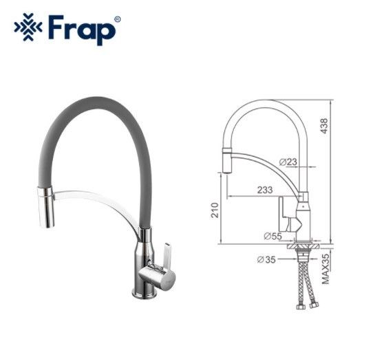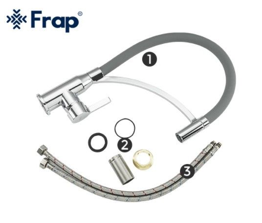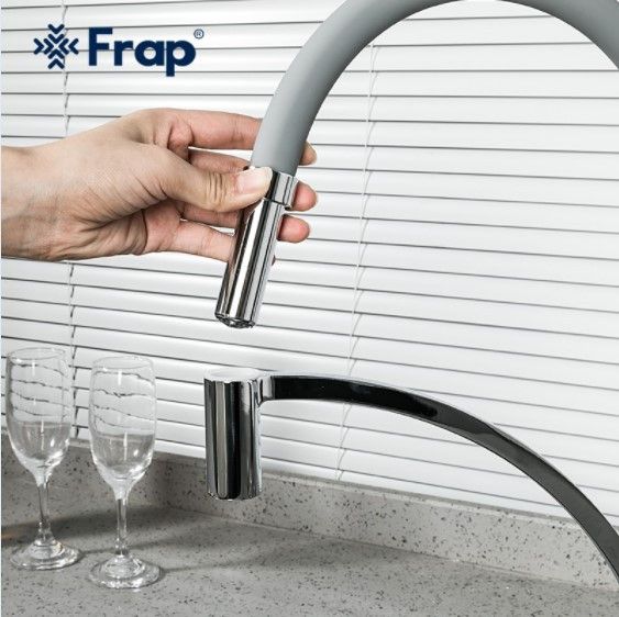 Змішувач для кухні з гнучким силіконовим виливом Frap F4552 вигідно виділяється своїм оригінальним дизайном та зручним, багатофункціональним виливом. Завдяки фіксатору гусак можна використовувати як стаціонарно, і рефлекторно. Корпус змішувача виконаний з латуні, на виливі одягнений силіконовий чохол. Змішувач кріпиться до миття або стільниці латунною гайкою.
