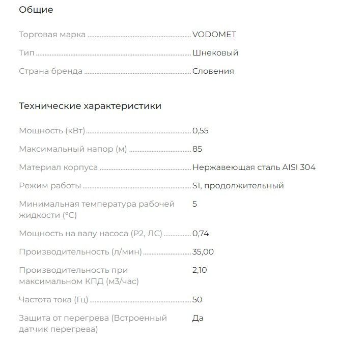 Окремо варто зазначити якість виготовлення свердловинного насоса VODOMET 3QGD 1.8-75-0.37.