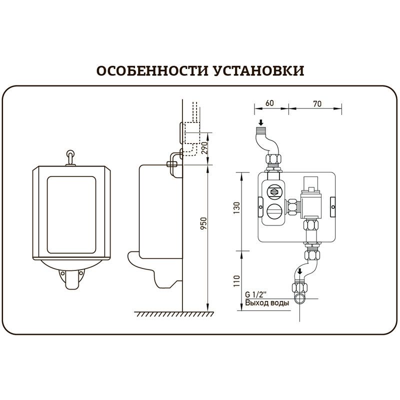 Обов'язкове встановлення відсікальних запірних пристроїв (крокових, голчастих кранів) між водопровідними виведеннями та підведенням змивного пристрою. У разі тривалого не використання змивного пристрою завжди перекривайте запірні пристрої, щоб унеможливити подавання води.
