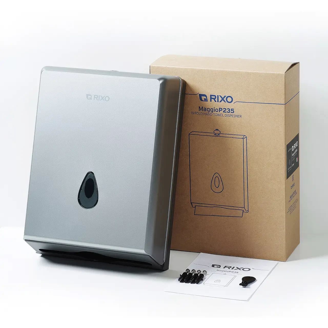 Диспенсер для листових паперових рушників Rixo Maggio P235S призначений для туалетних кімнат з середньою і високою прохідністю. Виготовлений з удароміцного пластика АВЅ. Підходить для листових паперових рушників Z, W складання. Закривається на ключ. Оглядове вікно у вигляді краплі дозволяє контролювати наявність паперу в диспенсері. Диспенсери для паперу по популярності не поступаються електросушилкам для рук, бо безсумнівною перевагою сушіння рук з допомогою паперових рушників є відсутність пересушування шкіри рук, чим не може похвалитися електросушарка.