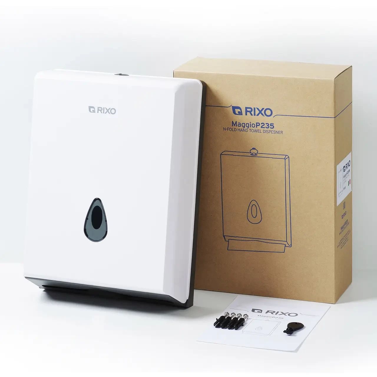 Диспенсер для листових паперових рушників Rixo Maggio P235W призначений для туалетних кімнат з середньою і високою прохідністю. Виготовлений з удароміцного пластика АВЅ. Підходить для листових паперових рушників Z, W складання. Закривається на ключ. Оглядове вікно у вигляді краплі дозволяє контролювати наявність паперу в диспенсері. Диспенсери для паперу по популярності не поступаються електросушилкам для рук, бо безсумнівною перевагою сушіння рук з допомогою паперових рушників є відсутність пересушування шкіри рук, чим не може похвалитися електросушарка.