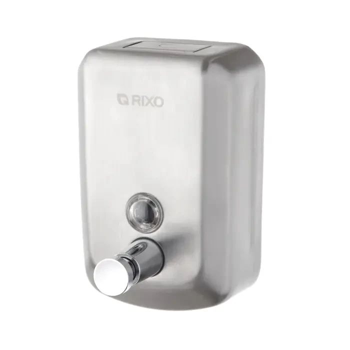 Дозатор рідкого мила Rixo Solido S112 з нержавіючої сталі, призначений для оснащення санітарно-гігієнічних кімнат мережі громадського харчування, спортивних, медичних закладів, барів, ресторанів, кафе, шкіл, а також для використання в домашніх умовах. Дозатор виконаний з нержавіючої сталі з матовим покриттям. Оглядове вікно дозволяє контролювати рівень рідкого мила в дозаторі. Надійна і міцна система подачі виключає протікання. Дозатор закривається на ключ, що виключає попадання сторонніх предметів в ємність. Нержавіюча сталь AISI 304, з якої він зроблений, відноситься до високоякісної і найбільш стійкою до корозії. Матова поліровка виділить його корпус в інтер'єрі туалетної кімнати. Сталевий корпус надає йому антивандальні властивості, дозатору вкрай важко нанести механічні і термічні пошкодження.