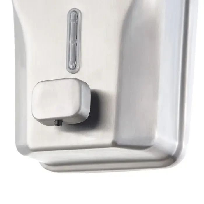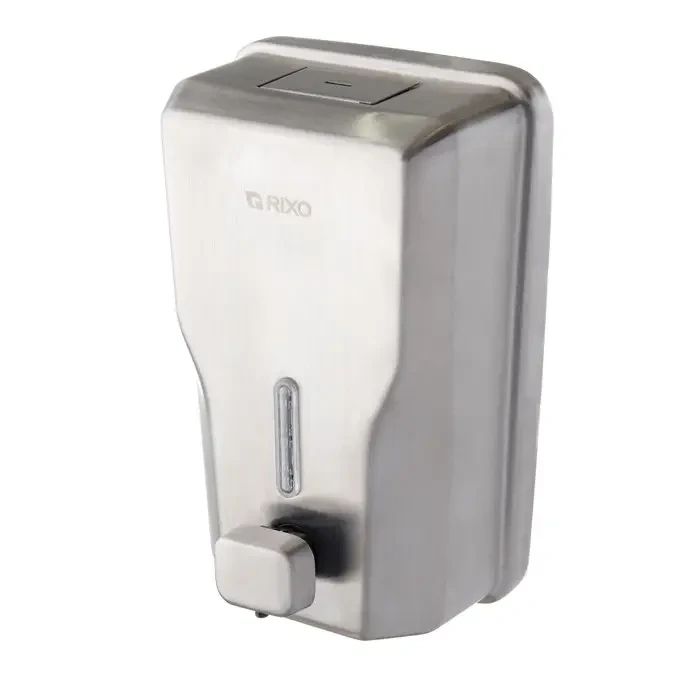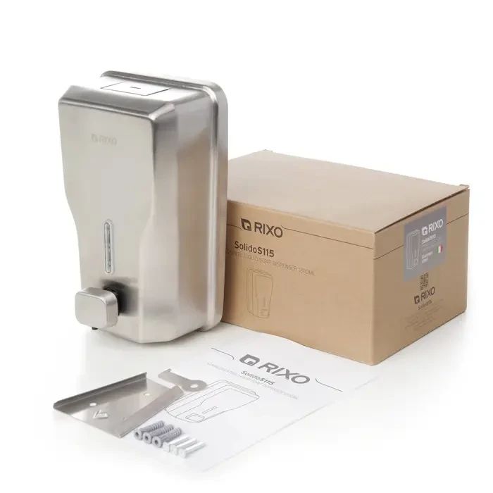 Дозатор рідкого мила з нержавіючої сталі Rixo Solido S115. Дозатор виготовлений з високоякісної нержавіючої сталі AISI 304, яка забезпечить довгий термін служби і може використовуватися протягом багатьох років. Кнопка з клапаном дозволяє швидко і легко дозувати мило, а прозоре віконце на передній панелі дозволяє легко при необхідності стежити за кількістю мила, щоб його можна було вчасно поповнити. Дозатор закривається на ключ, що виключає попадання сторонніх предметів в ємність. Стінки дозатора товщиною 0,8 мм надають йому антивандальні властивості.