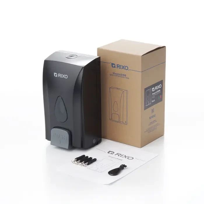 Дозатор для рідкого мила універсальний Rixo Maggio S188B для туалетних кімнат з середньою і високою прохідністю. Дозатор має замок, який знаходиться зверху кришки і відкривається за допомогою ключа, що запобігає попаданню сторонніх предметів в ємність. Індикатор в центрі корпусу підкаже, коли закінчується миюча рідина. Призначений для роботи з рідинами будь-якої в'язкості і засобів для дезінфекції рук. Виготовлений з удароміцного пластика АВЅ.