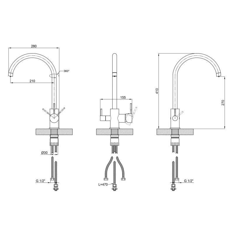 КомплектаціяЗмішувач, гнучкі шланги, кріплення.