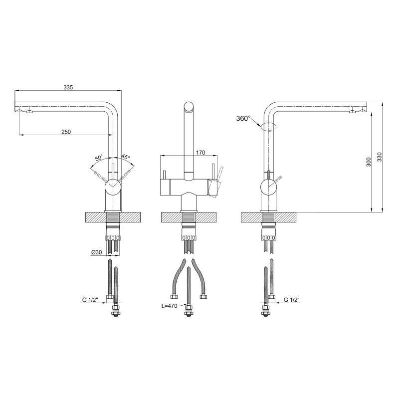 Змішувач для кухн Lidz Ariaі 24F-SFS, F-подібний з використанням фільтрованої води (k35)