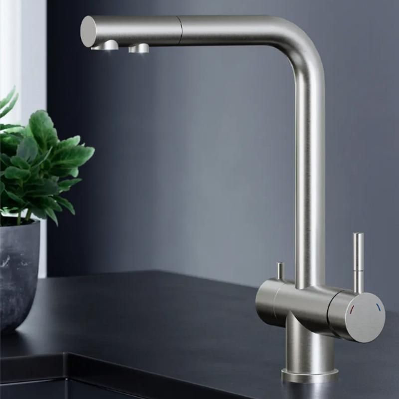 Змішувач для кухні з підключенням до фільтру питної води Lidz Aria 020F1 - стильна модель у сучасному дизайні, виготовлена з нержавіючої сталі. Завдяки нікельованій брашованій поверхні, має оригінальний зовнішній вигляд. Виконаний у сучасному стриманому стилі. Такий змішувач не тільки зручний та практичний, але й ідеально доповнить інтер'єр кухні.