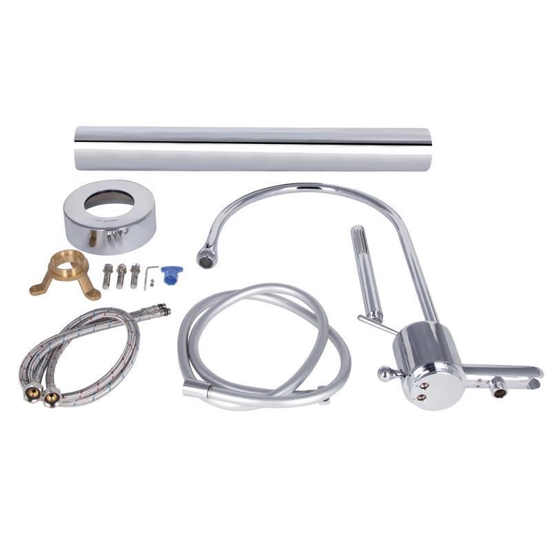 Змішувач для ванни Qtap Jay з довгим поворотним виливом (з душовим гарнітуром) QTJAY2601CRW45552 В наявності