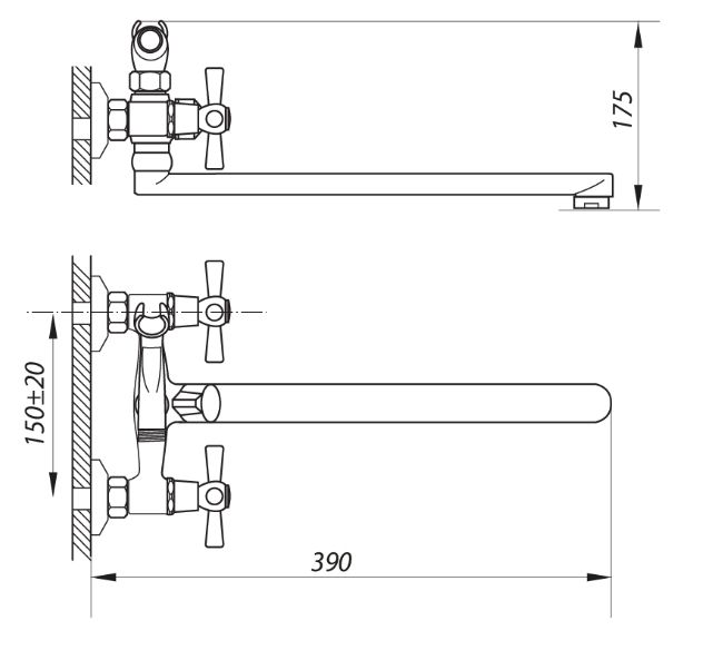 Монтаж. Настінний спосіб встановлення змішувача ZERIX DMT -B 827 дає змогу без допомоги фахівців виконати його монтаж.