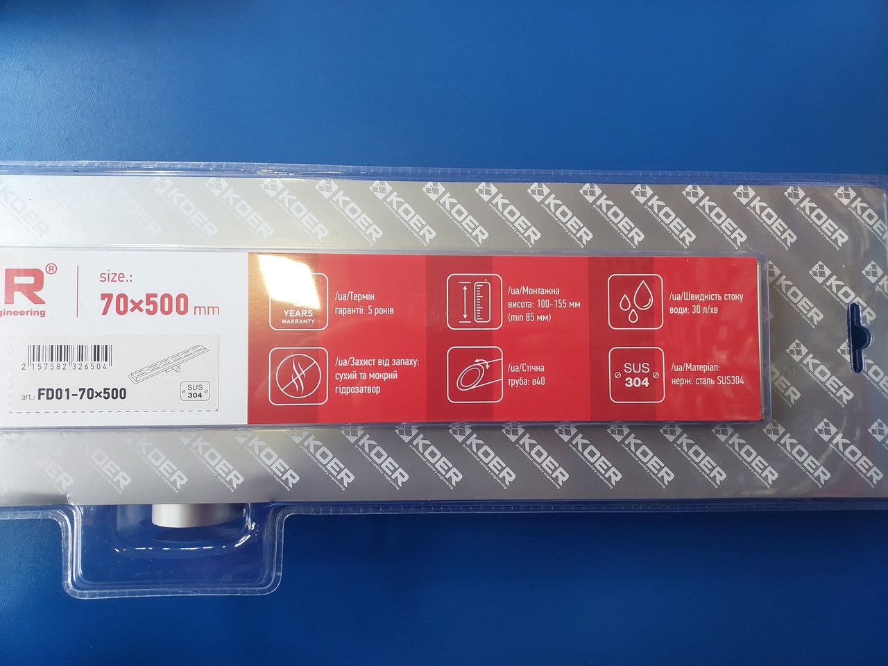 Душовий трап із нержавіючої сталі KR FD01-70x500 SUS304