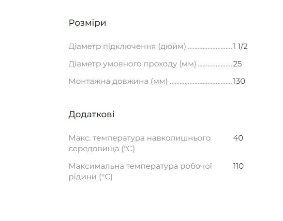Максимальний робочий тиск: 1,0 МПА (10 бар)