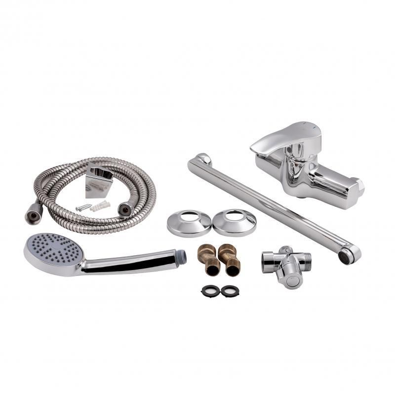 Змішувач для ванни Lidz (CRM) 41 86 005C-2 з довгим поворотним виливом виготовлений із цинку, укомплектований кронштейном для ручного душу, душовим шлангом і лійкою. Завдяки хромованому покриттю має міцну поверхню та привабливий зовнішній вигляд. Декоративні розетки приховають похибки встановлення на оздобленні кімнати. Напір води та її температура регулюються поворотом важеля в потрібне положення. Перемикання ванна/душ здійснюється за допомогою дивертора.