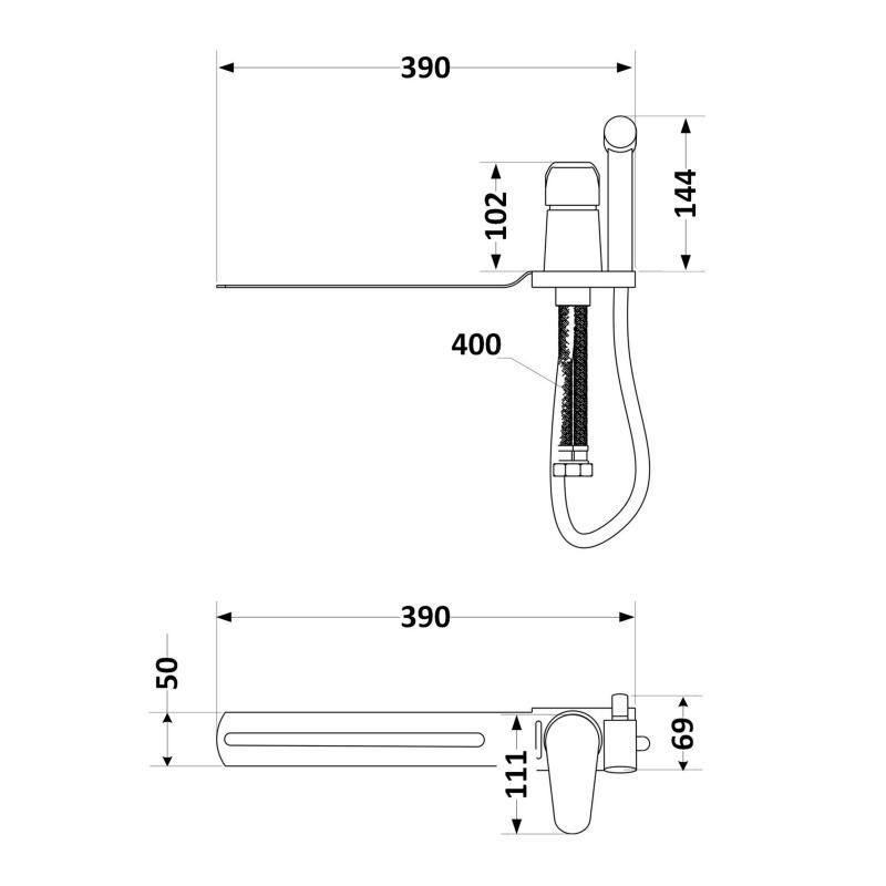 Габаритні розміри виробу (ШхГхВ), мм390х50х144