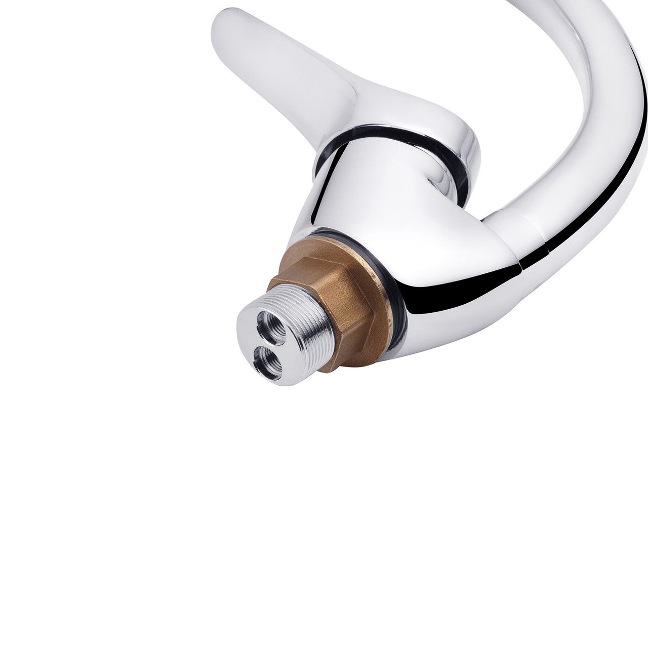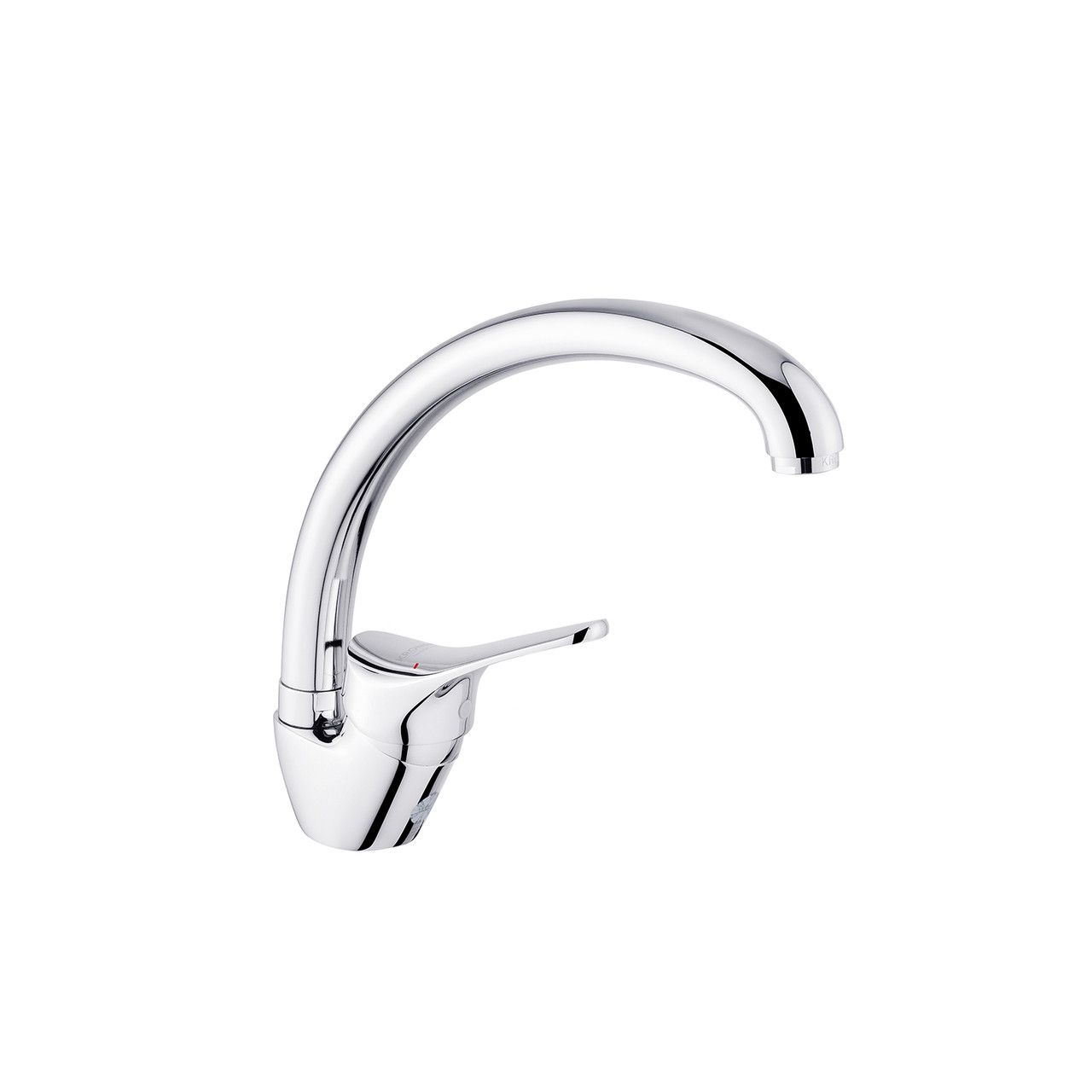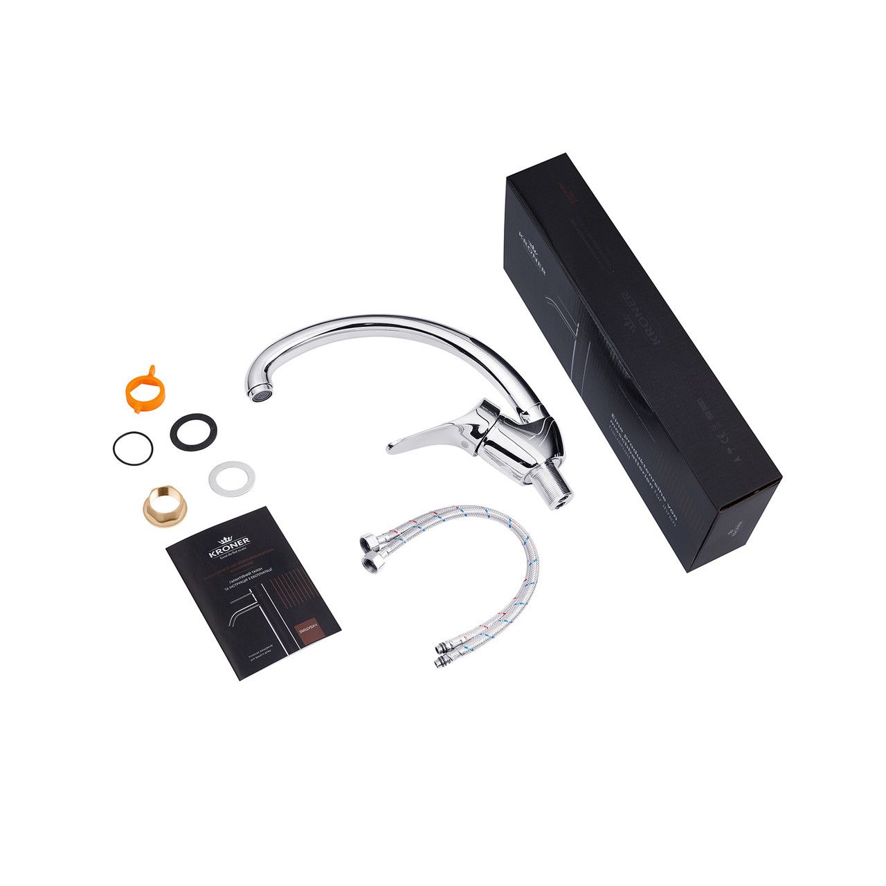Змішувач для кухні Kroner KRM Bayern — C030 — ідеальний вибір для вашої кухні. Виготовлений із високоякісної латуні, гарантує міцність і довговічність. Має привабливий глянсовий хромований колір, що надає йому елегантності. Змішувач обладнаний картриджним механізмом змішування, що дає змогу зручно регулювати температуру води. Його унікальна С-подібна форма виливу забезпечує зручність під час наповнення посуду або миття продуктів. Насолоджуйтеся функціональністю й стилем змішувача Kroner.