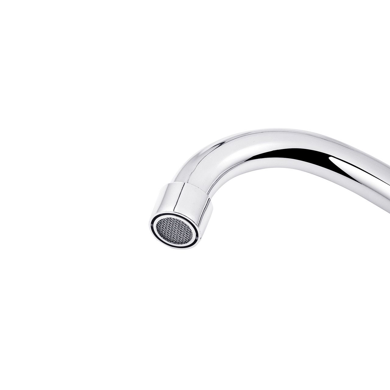Кран на одну воду Kroner KRM Rhein — C090 — ідеальне рішення для вашої кухні. Врізний монтаж дає змогу гармонійно вписати його в робочу поверхню. Виготовлений із високоякісного силуміну, кран вирізняється міцністю й довговічністю. Хромована глянсова поверхня надає йому елегантності та легко підтримується в чистоті. Механізм змішування на основі кран-букси забезпечує зручне регулювання потоку води. Кран від Kroner доповнить вашу кухню зручністю й естетикою.