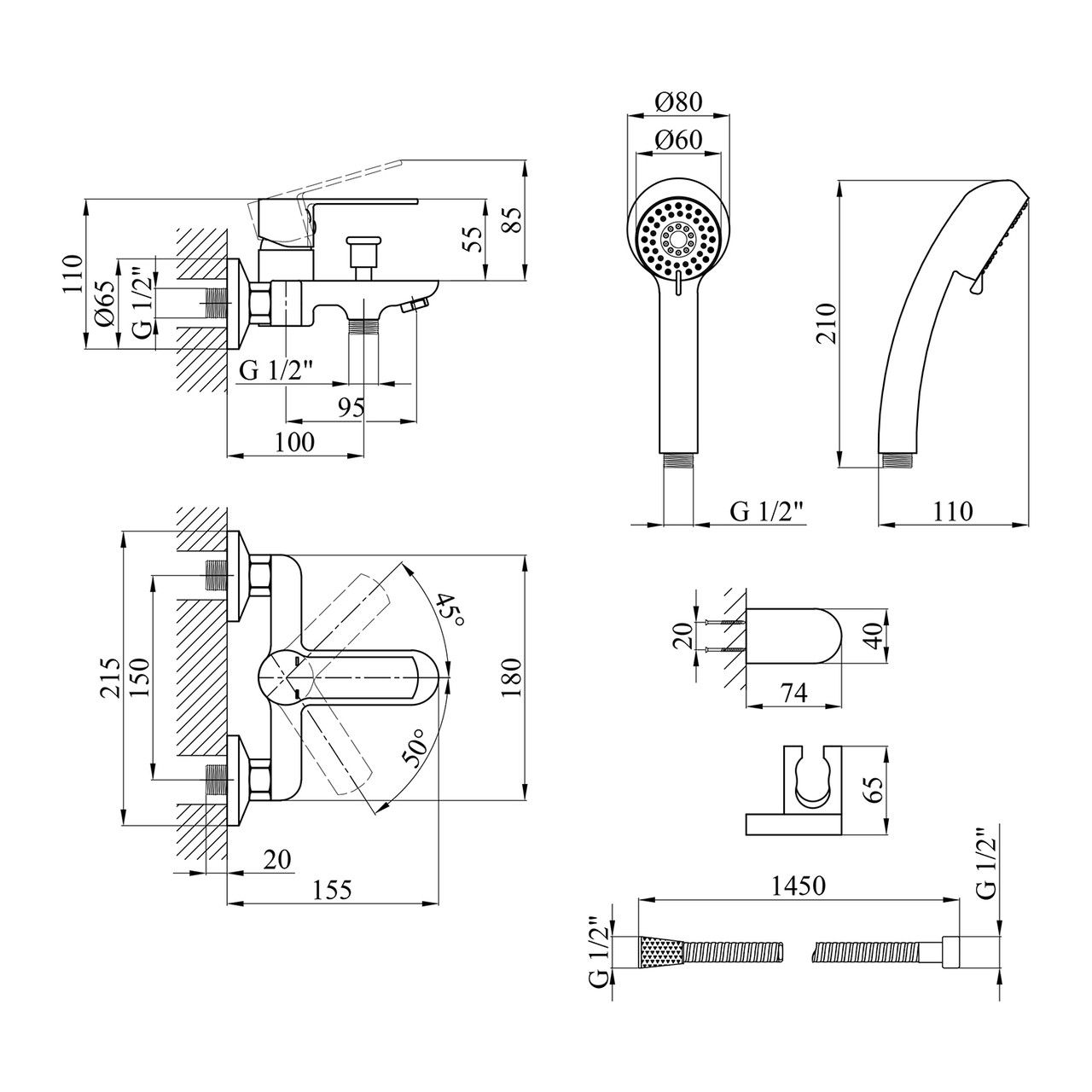 Длина душевого шланга, мм1450
