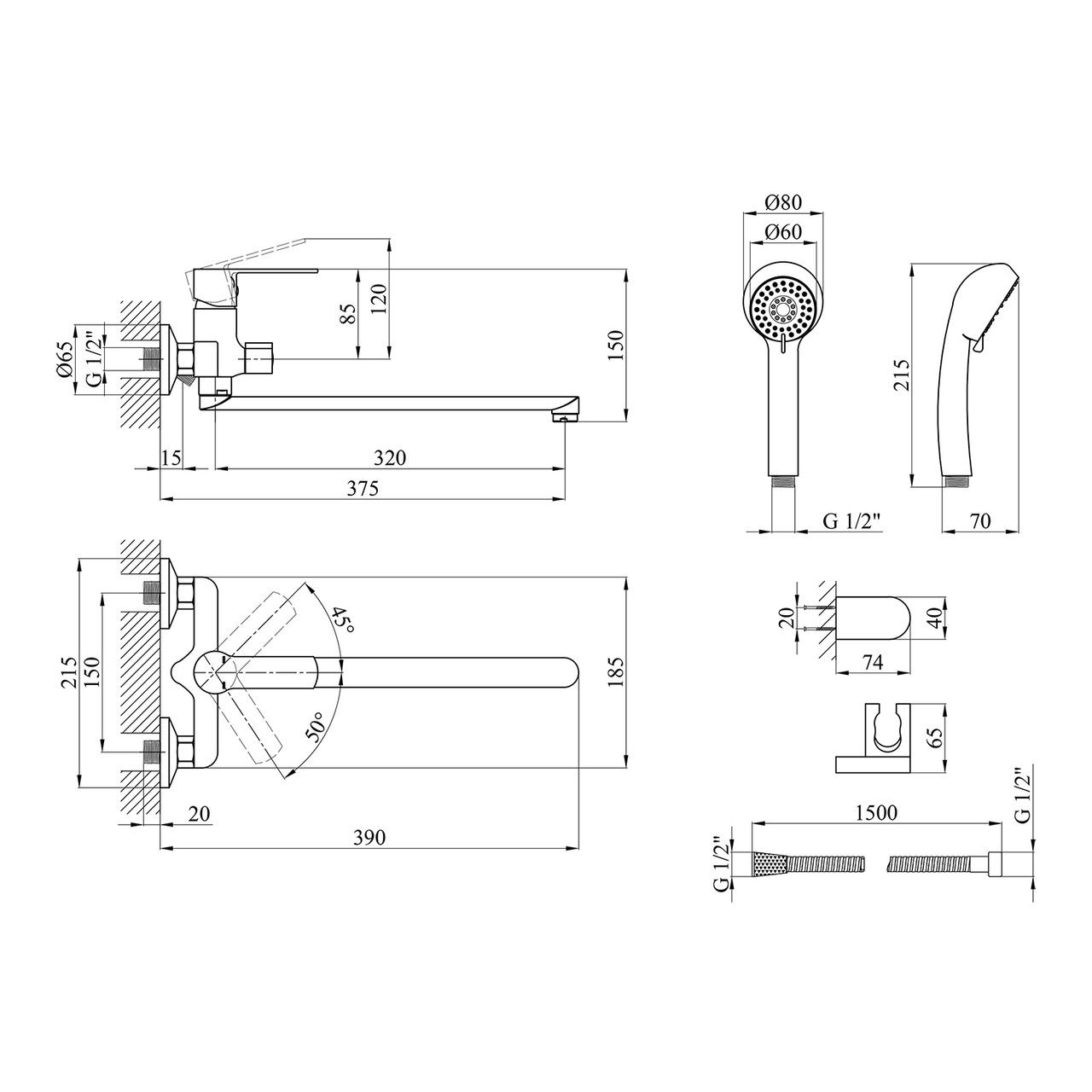 ОбладнанняСмеситель, лейка для ручного душа, душевой шланг, кронштейн для ручного душа, крепежи, инструкция.