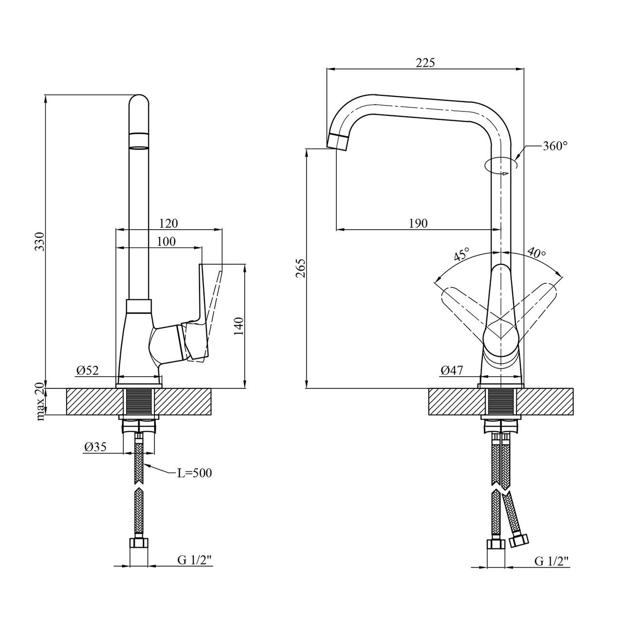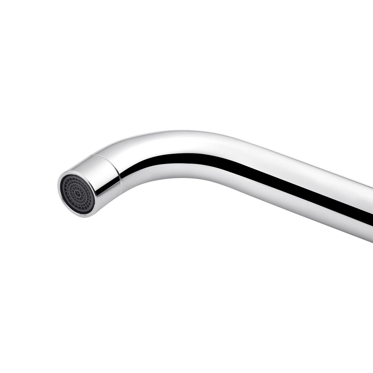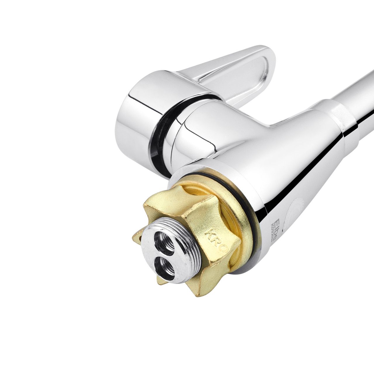 Змішувач для кухні Kroner KRM Elbe — C030 — ідеальний вибір для вашої кухні. Виготовлений із високоякісного силуміну, гарантує міцність і довговічність. Має привабливий глянсовий хромований колір, що надає йому елегантності. Змішувач обладнаний картриджним механізмом змішування, що дає змогу зручно регулювати температуру води. Його унікальна Г-подібна форма виливу забезпечує зручність під час наповнення посуду або миття продуктів. Насолоджуйтеся комфортом і зручністю використання разом із Kroner.