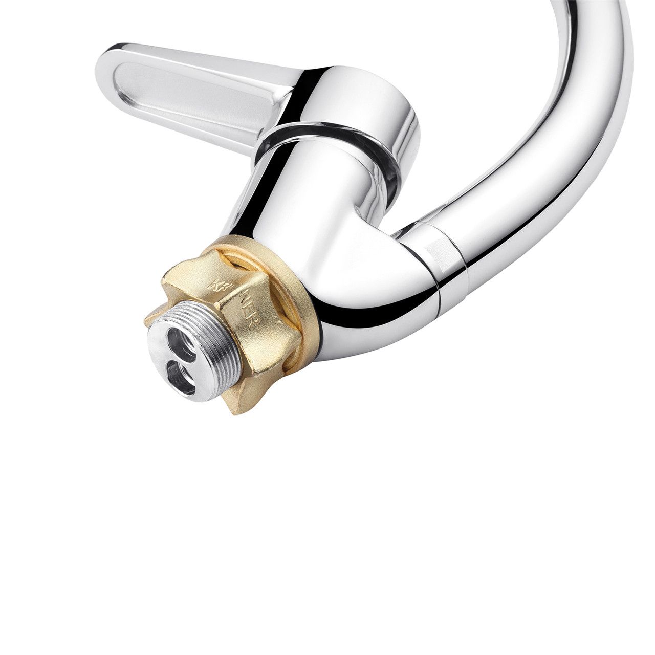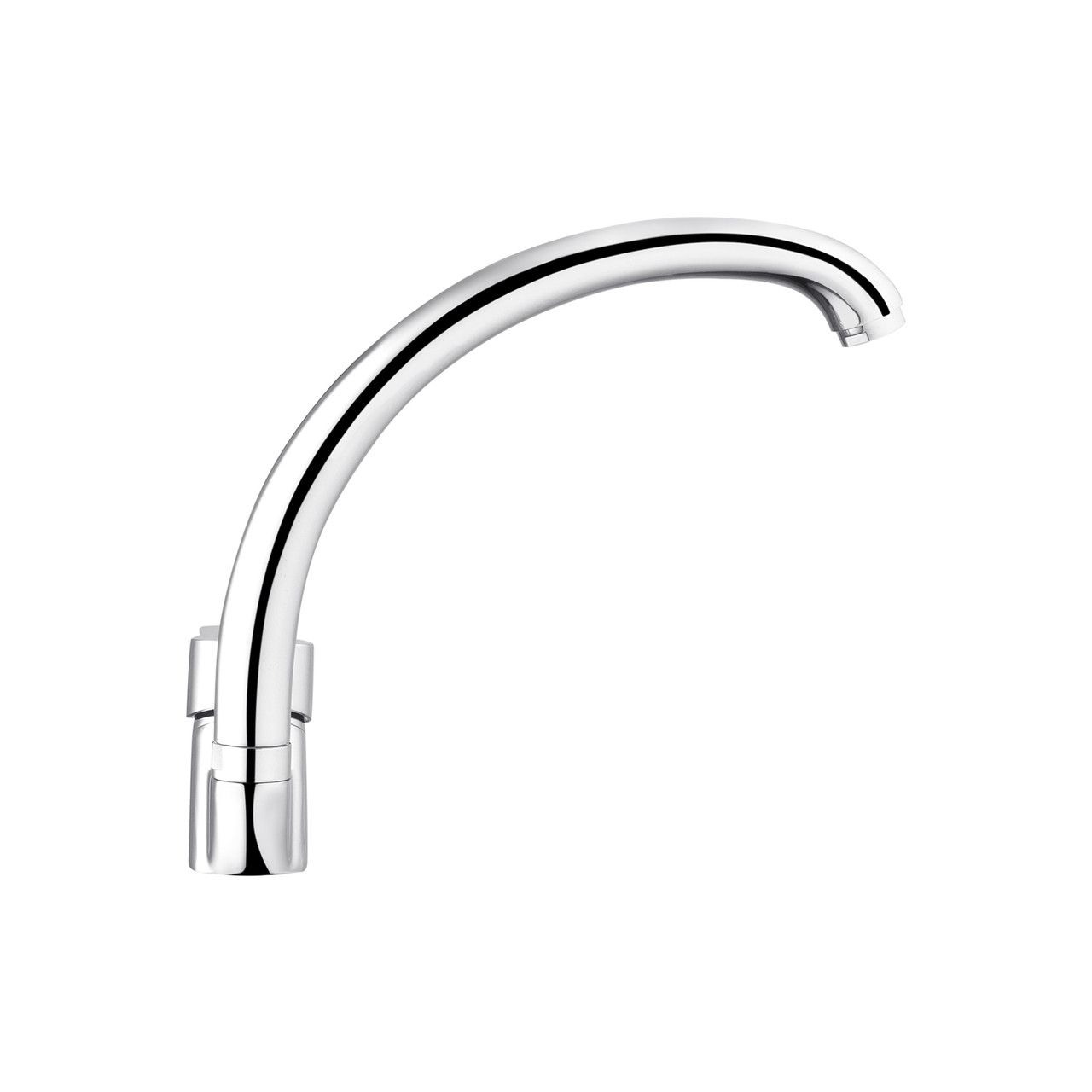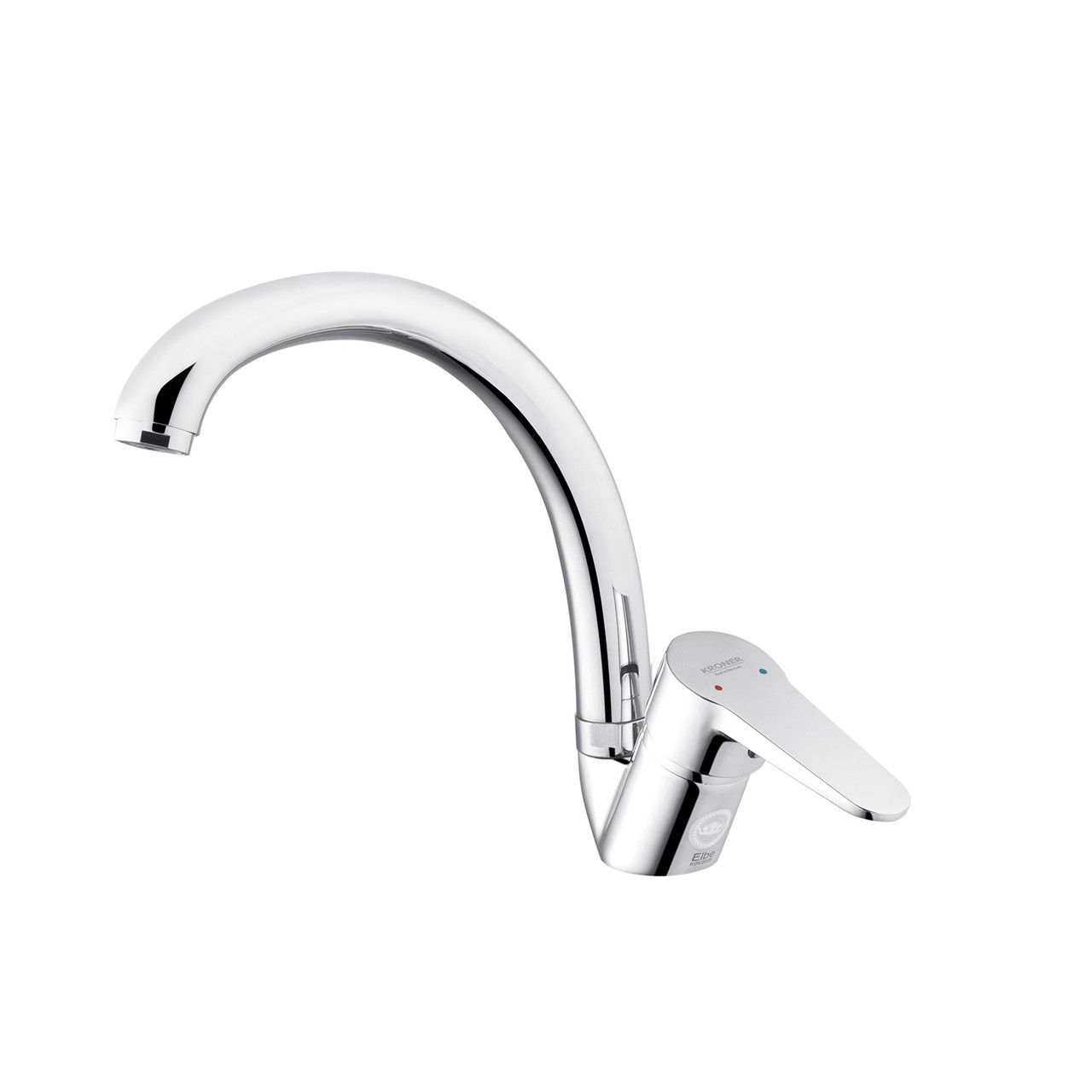 Змішувач для кухні Kroner KRM Elbe — C032 — ідеальний вибір для вашої кухні. Виготовлений із високоякісного силуміну, гарантує міцність і довговічність. Має привабливий глянсовий хромований колір, що надає йому елегантності. Змішувач обладнаний картриджним механізмом змішування, що дає змогу зручно регулювати температуру води. Його унікальна С-подібна форма виливу забезпечує зручність під час наповнення посуду або миття продуктів. Насолоджуйтеся комфортом і зручністю використання разом із Kroner.
