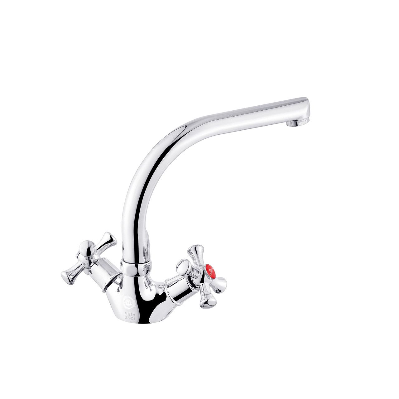 Змішувач для кухні Kroner KRM Rhein — C033 — ідеальний вибір для вашої кухні. Виготовлений із високоякісного силуміну, забезпечує надійність і довговічність використання. Хромований колір і глянсова поверхня надають йому стильного вигляду, вписуючись у будь-який дизайн кухні. Форма Г-подібного виливу дає змогу легко наповнювати великі каструлі та зручно мити посуд. Механізм змішування на основі кран-букси сприяє точному регулюванню температури води. Насолоджуйтеся функціональністю й стилем змішувача Kroner.