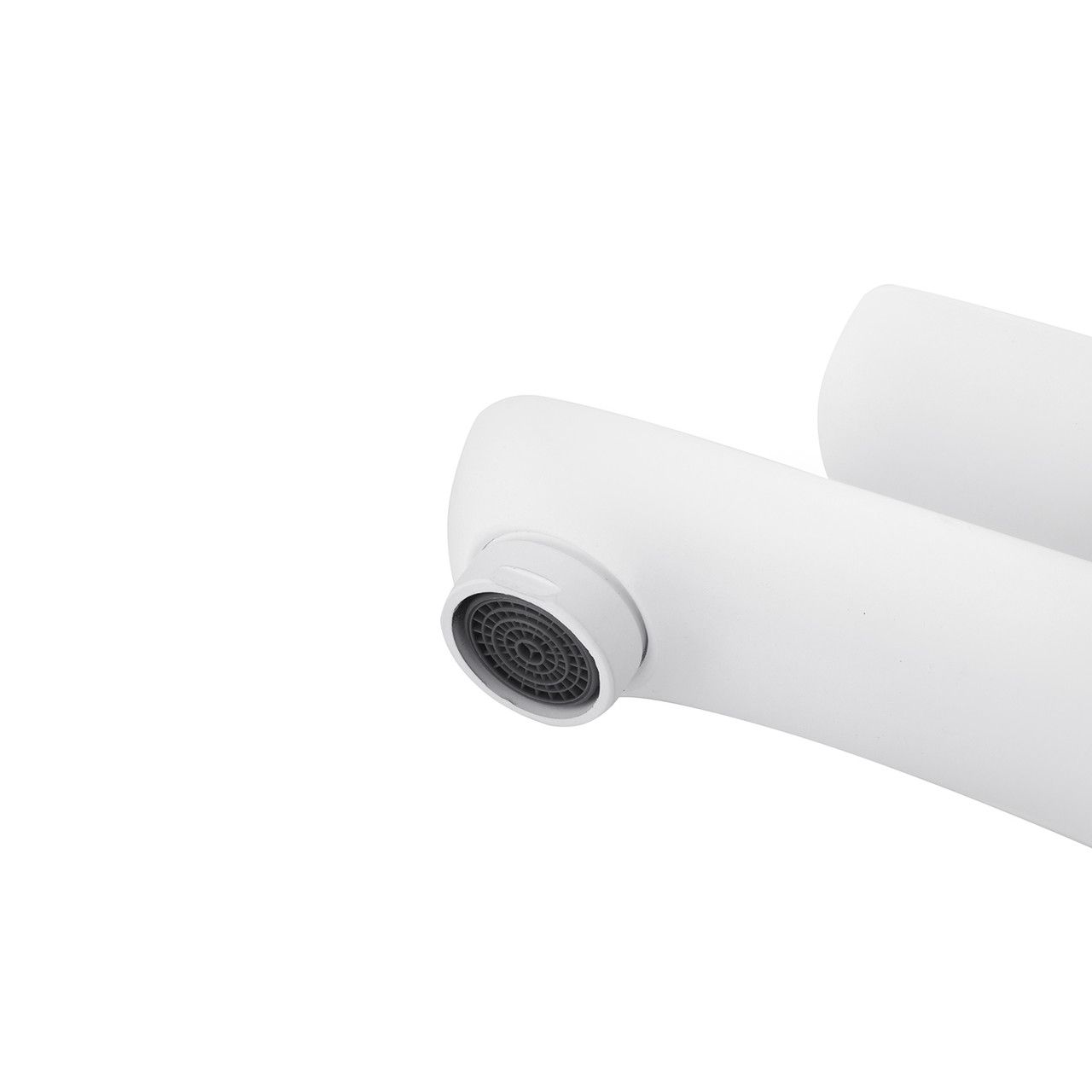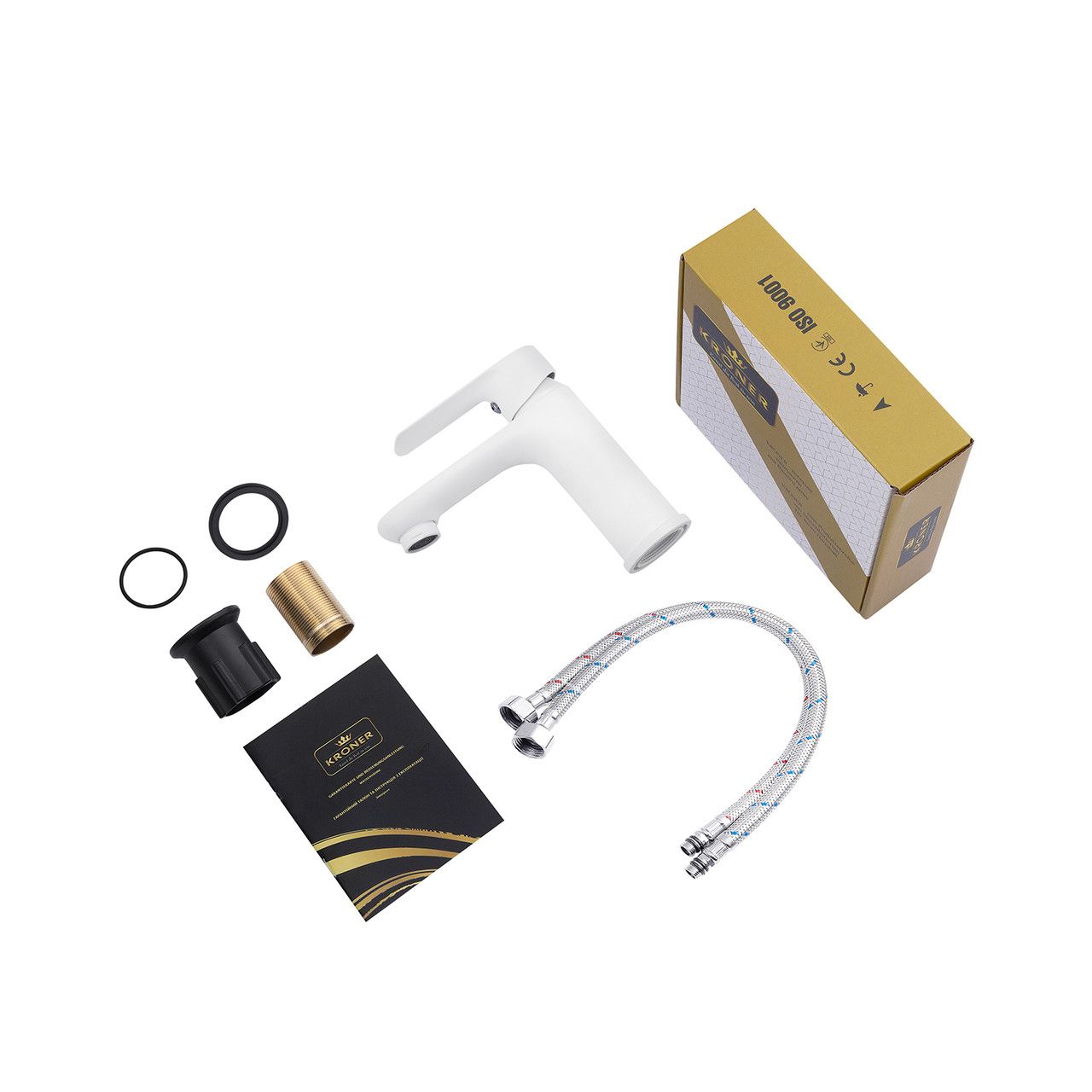 Змішувач для раковини Kroner KRM Fulda — W010 — стильний і практичний вибір для вашої ванної кімнати. Виготовлений із високоякісного силуміну, гарантує довговічність і надійність. Привабливий матовий білий колір надає йому елегантності та сучасного вигляду. Картриджний механізм змішування забезпечує плавне регулювання температури води. Врізний спосіб монтажу дає змогу зберігати естетичний вигляд раковини. Змішувач Kroner — це стильний акцент, який додасть вашому дизайну особливої гармонії та розкоші.